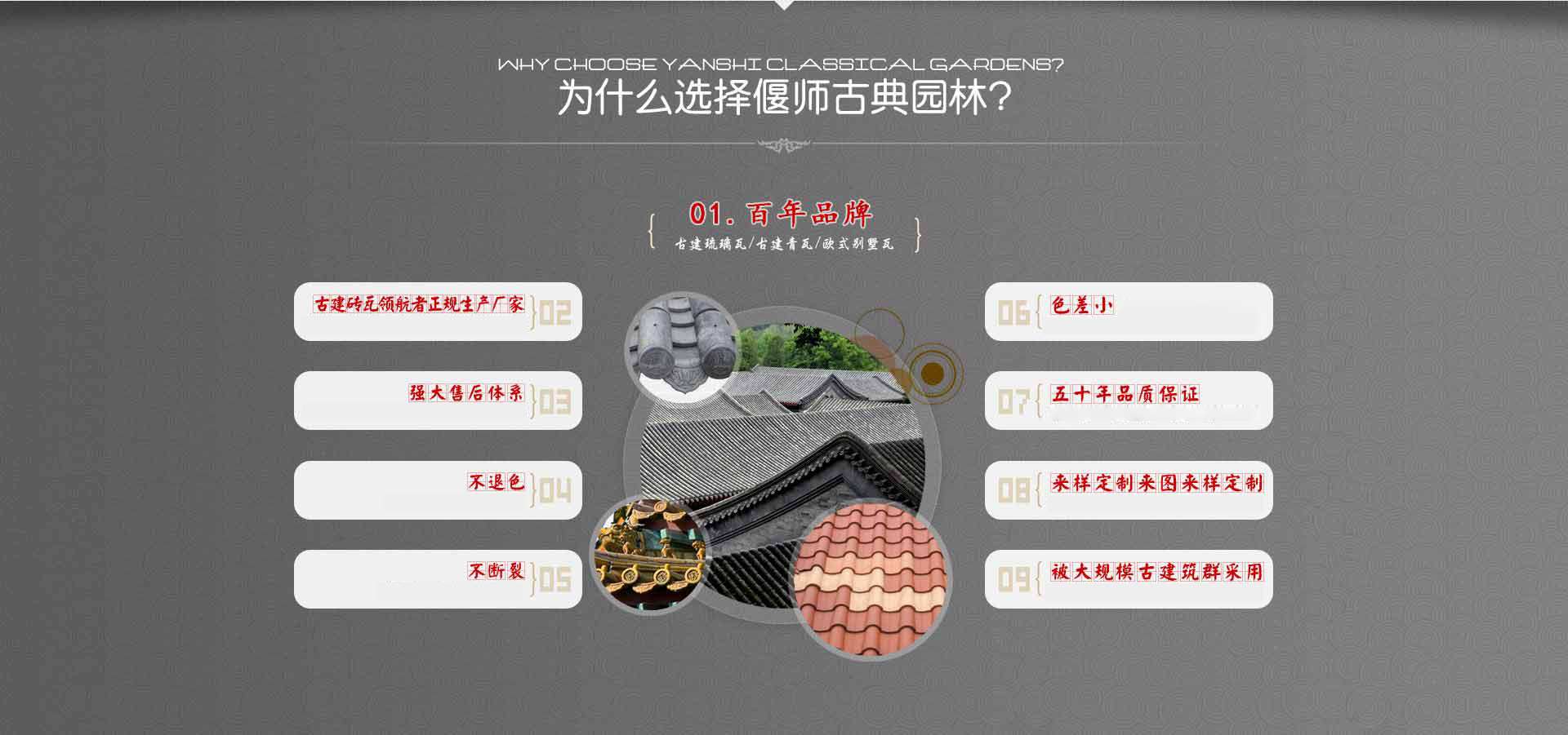 我公司專業生產古建琉璃瓦、青磚、青瓦等仿古建材,質優價廉,是一家質量信得過、實力雄厚的廠家。
